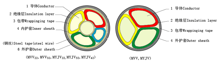 煤礦用聚氯乙烯絕緣細鋼絲鎧裝聚氯乙烯護套電力電纜 PVC insulated fine steel wire armored PVC sheathed power cables for use in mines |