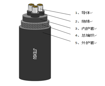 銅芯乙丙橡皮絕緣纖維分編織橡膠內(nèi)護(hù)套纖維總編織聚氨脂彈性體外護(hù)套卷筒用電纜