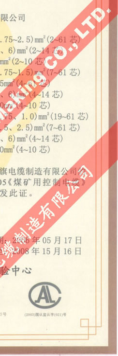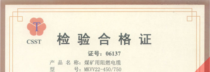國(guó)家采煤機(jī)械質(zhì)量監(jiān)督檢驗(yàn)中心檢驗(yàn)合格證--煤礦用阻燃電纜(MKVV22-450/750)
