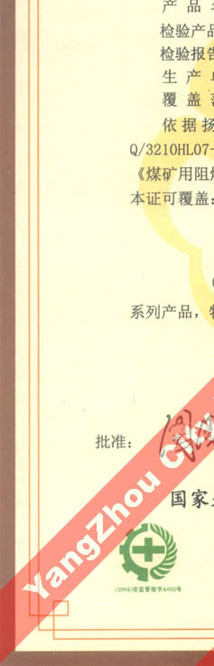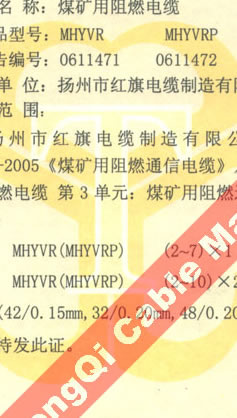 國家采煤機(jī)械質(zhì)量監(jiān)督檢驗中心檢驗合格證--煤礦用阻燃電纜(MHYVR,MHYVRP)