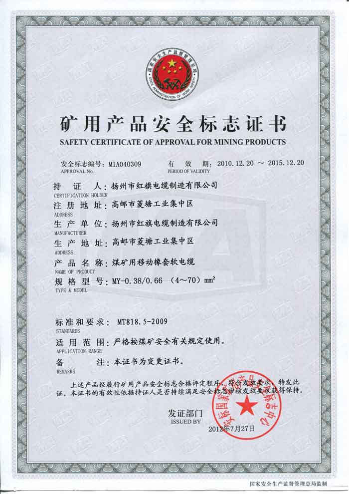 煤礦礦用產(chǎn)品安全標(biāo)志證書-MY