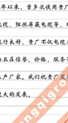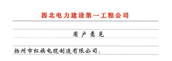 西北電力建設(shè)第一工程公司在多年使用我公司多種電纜產(chǎn)品后對我公司產(chǎn)品質(zhì)量和服務(wù)的評價(jià)