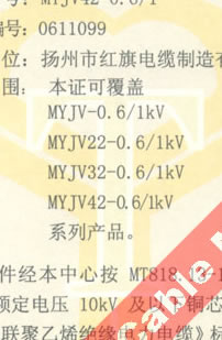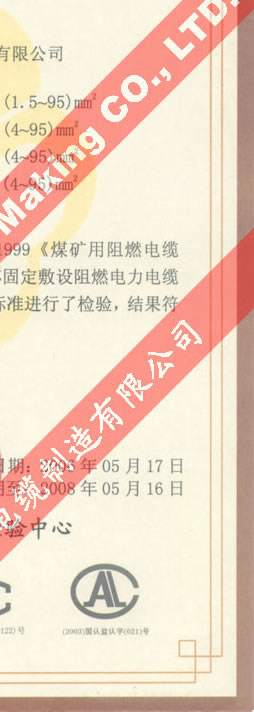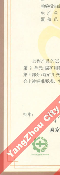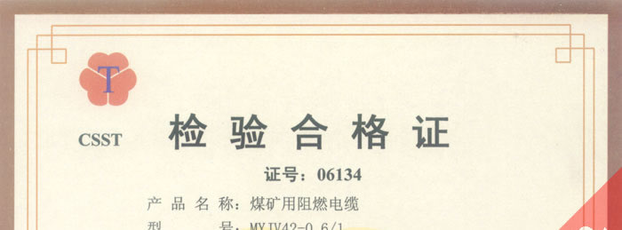 國(guó)家采煤機(jī)械質(zhì)量監(jiān)督檢驗(yàn)中心檢驗(yàn)合格證--煤礦用阻燃電纜(MYJV42-0.6/1)