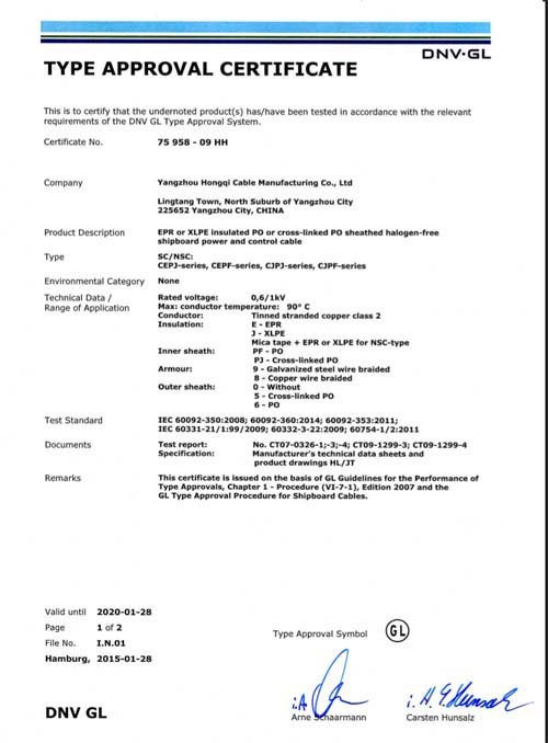 船岸連接電纜工廠認可
