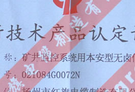 高新技術(shù)產(chǎn)品認(rèn)定證書(礦井監(jiān)控系統(tǒng)用本安型無鹵低煙屏蔽信號電纜)