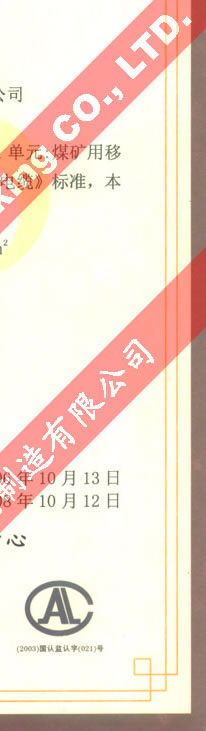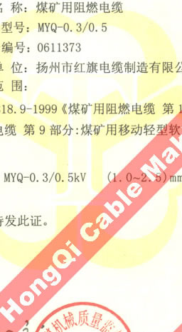 國家采煤機械質量監(jiān)督檢驗中心檢驗合格證--煤礦用阻燃電纜(MYQ-0.3/0.5)
