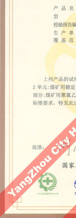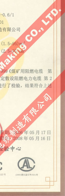 國(guó)家采煤機(jī)械質(zhì)量監(jiān)督檢驗(yàn)中心檢驗(yàn)合格證--煤礦用阻燃電纜(MVV-0.6/1 MVV22-0.6/1)