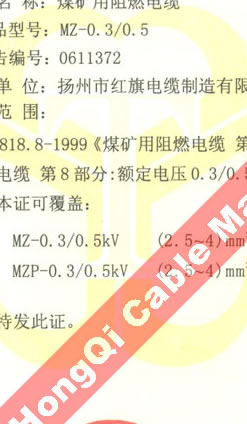 國家采煤機(jī)械質(zhì)量監(jiān)督檢驗(yàn)中心檢驗(yàn)合格證--煤礦用阻燃電纜(MZ-0.3/0.5)