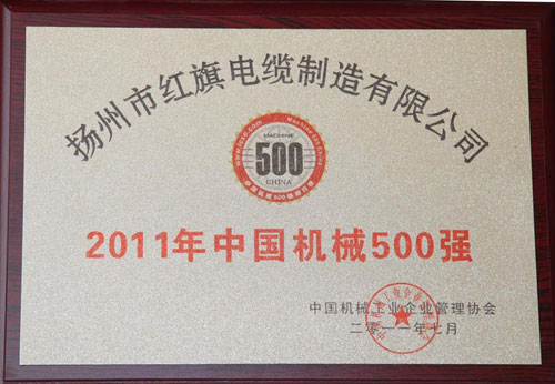 揚(yáng)州市紅旗電纜制造有限公司榮耀躋身國(guó)家機(jī)械行業(yè)500強(qiáng)